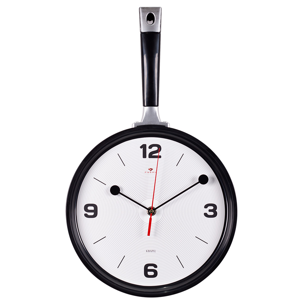 Часы настенные сковорода пластик 25*43 корпус чёрный Рубин (1/10)