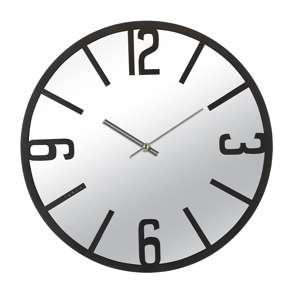 Часы настенные Рубин круг металл+зеркало d35 Мгновение МДФ открытая стрелка чёрный (1)