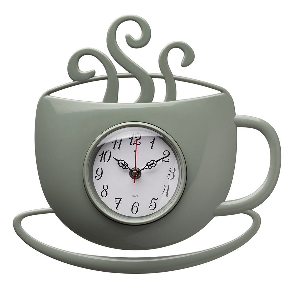 Часы настенные чашка с дымком пластик 31,5*30,5 Классика корпус оливковый Рубин (1/10)