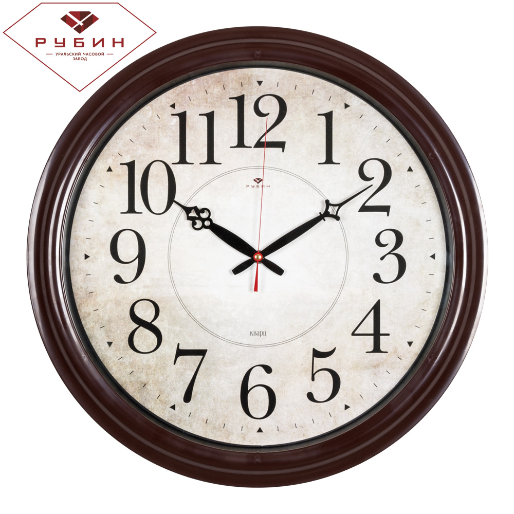 Часы настенные круг пластик 48*48 Классика корпус коричневый (5)