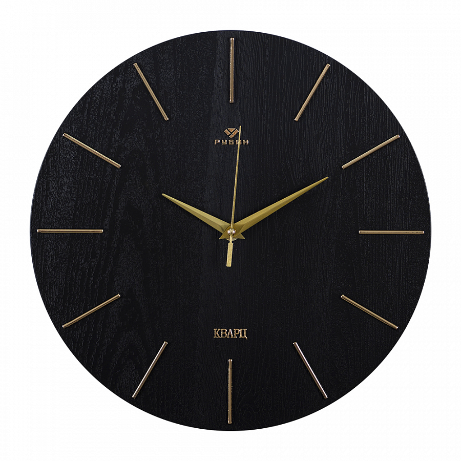Часы настенные круг пластик d=30см Классика корпус золото+черный (10)*