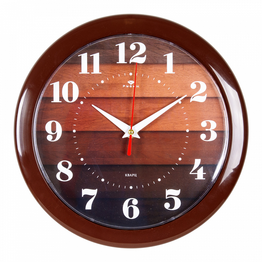 Часы настенные круг пластик d24,5 Паркет корпус коричневый Рубин (1/10)