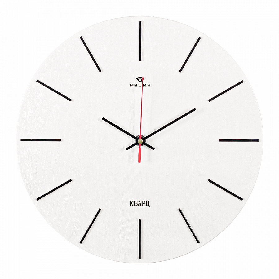 Часы настенные круг пластик d30 Классика корпус белый+чёрный Рубин (10)