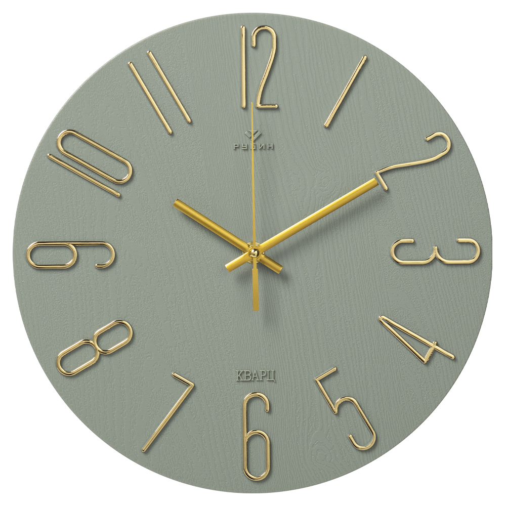 Часы настенные круг пластик d30 Классика корпус оливковый+золото Рубин (1/10)