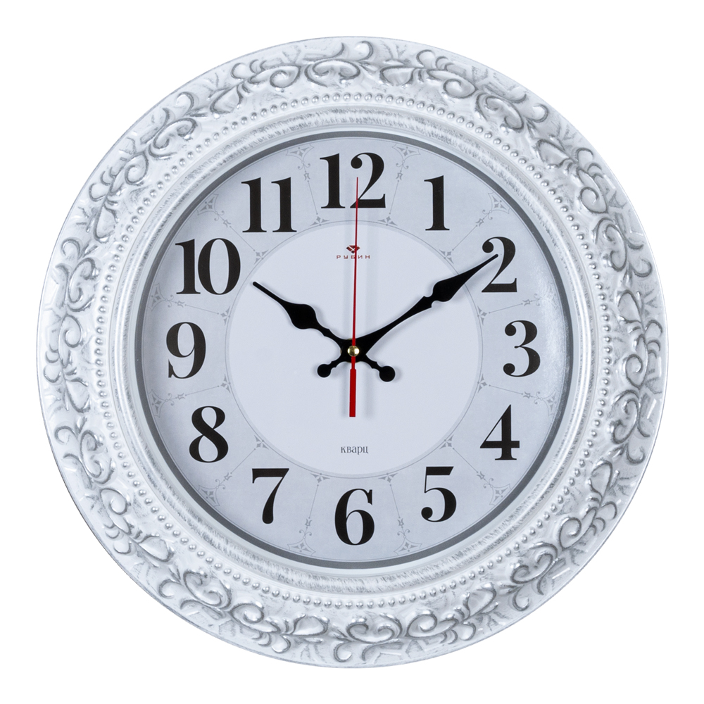 Часы настенные круг пластик d35 Классика корпус белый с серебром Рубин (1/10)