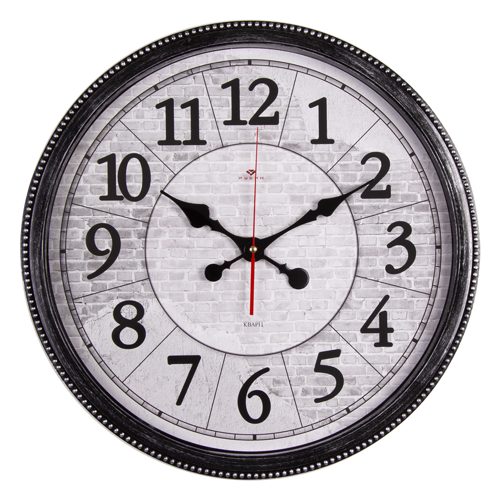 Часы настенные круг пластик d49,5 Лофт корпус чёрный с серебром Рубин (1/5)