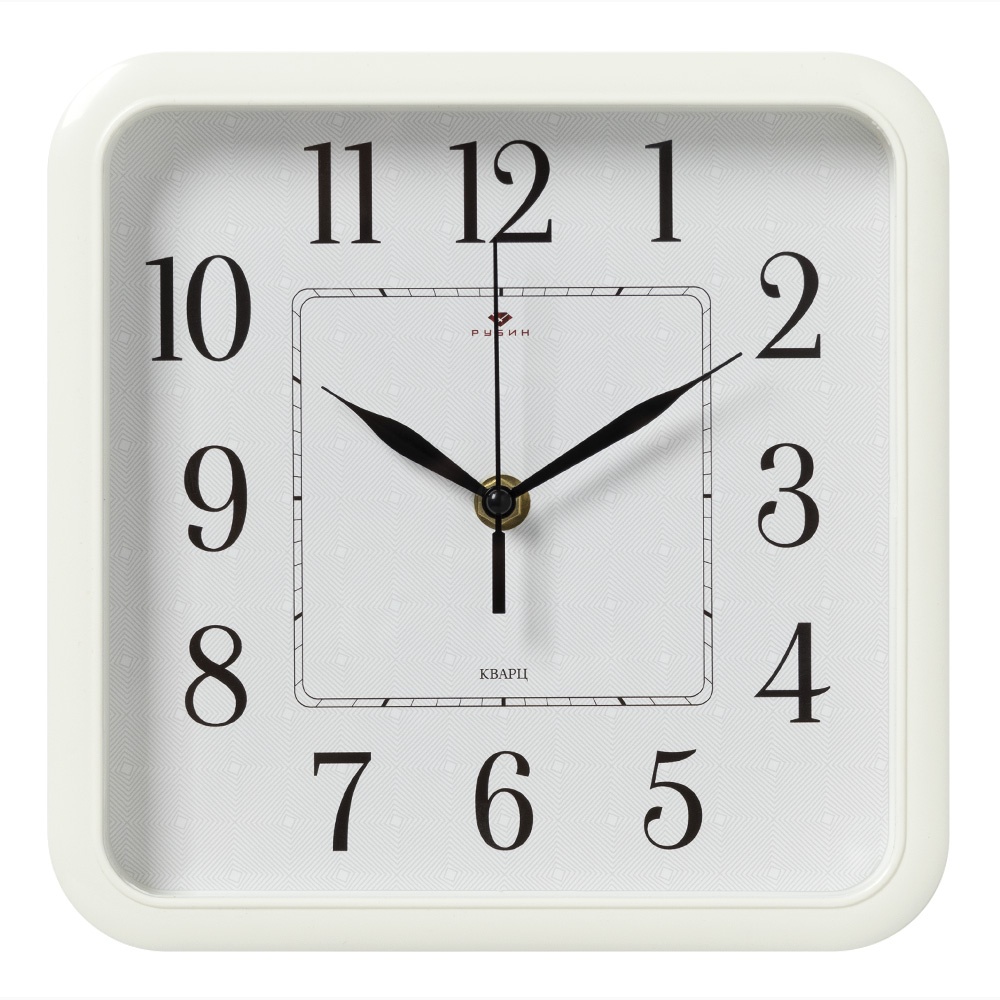 Часы настенные квадрат пластик 22*22 Классика корпус белый Рубин (1/10)