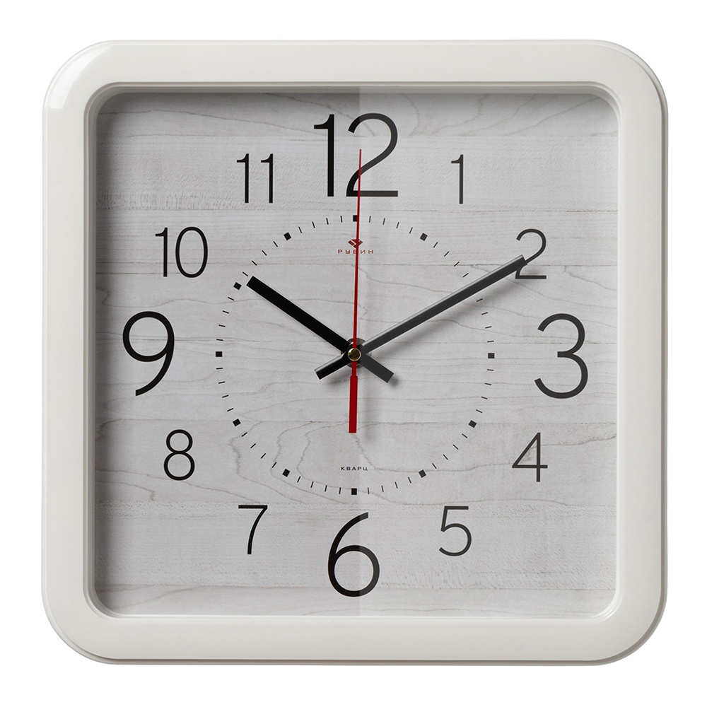 Часы настенные квадрат пластик 29*29 Текстура дерева корпус белый Рубин (1/10)