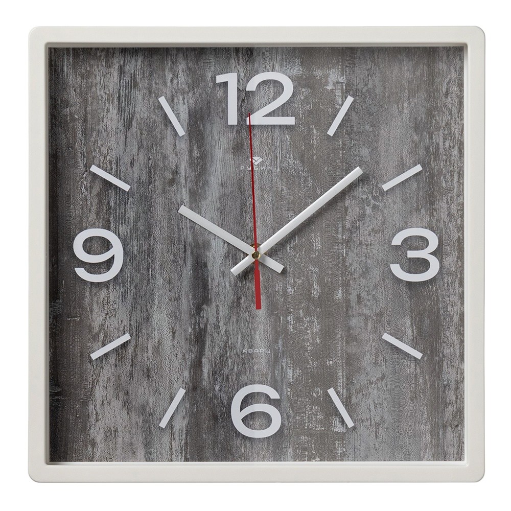 Часы настенные квадрат пластик 30*30 Структура дерева корпус белый Рубин (1/10)