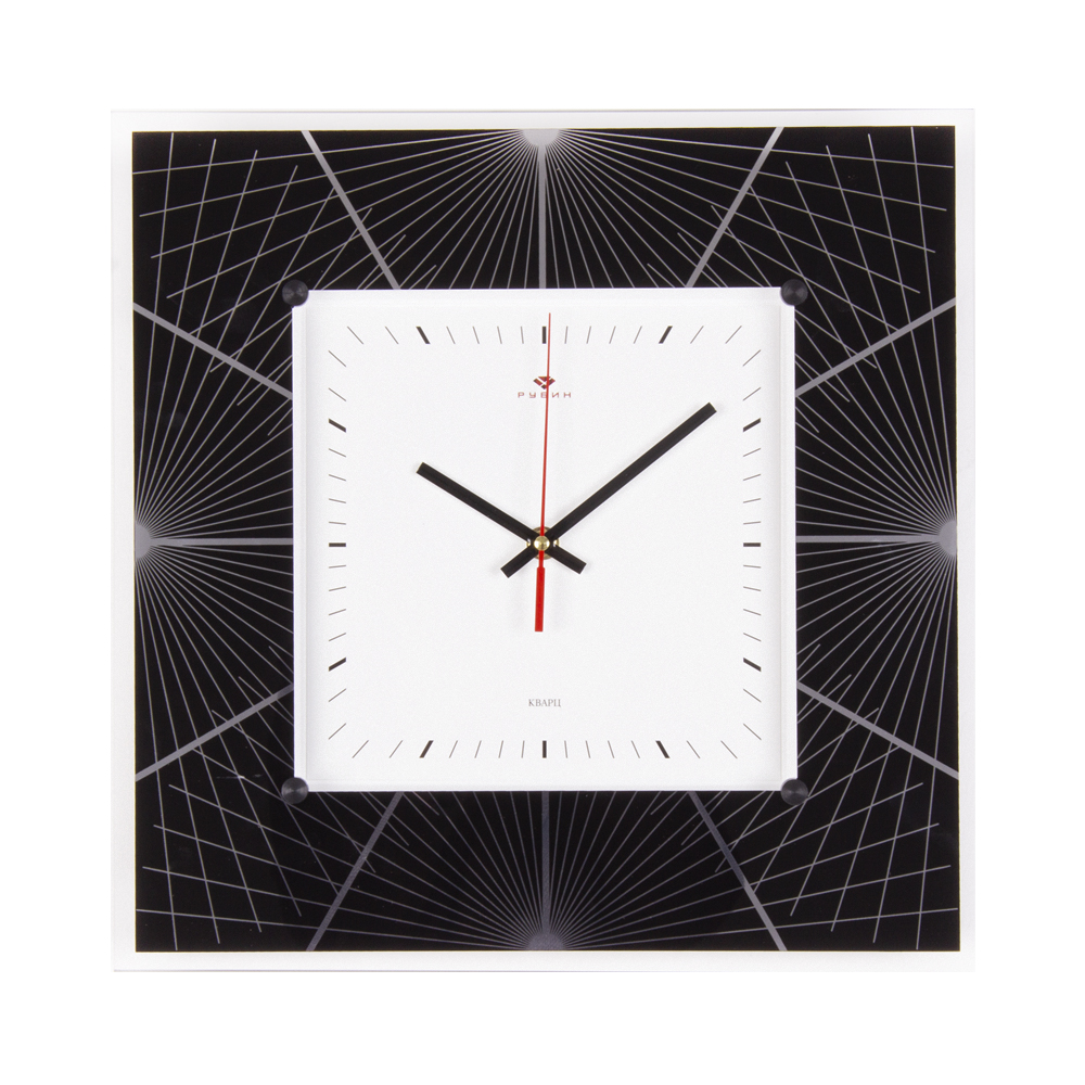 Часы настенные квадрат пластик 35*35 Геометрия 1 корпус белый Рубин (1/10)