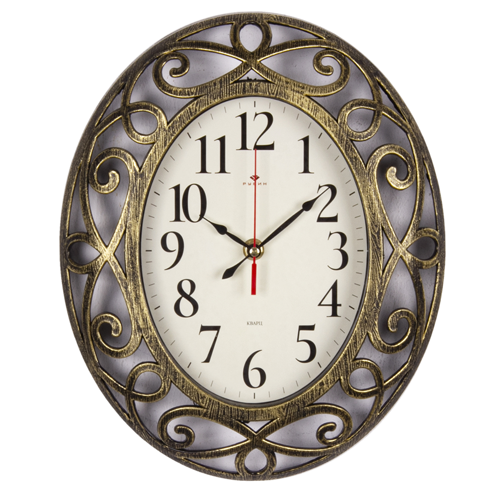Часы настенные овал 31х26 см, корпус черный с золотом "Классика" "Рубин"