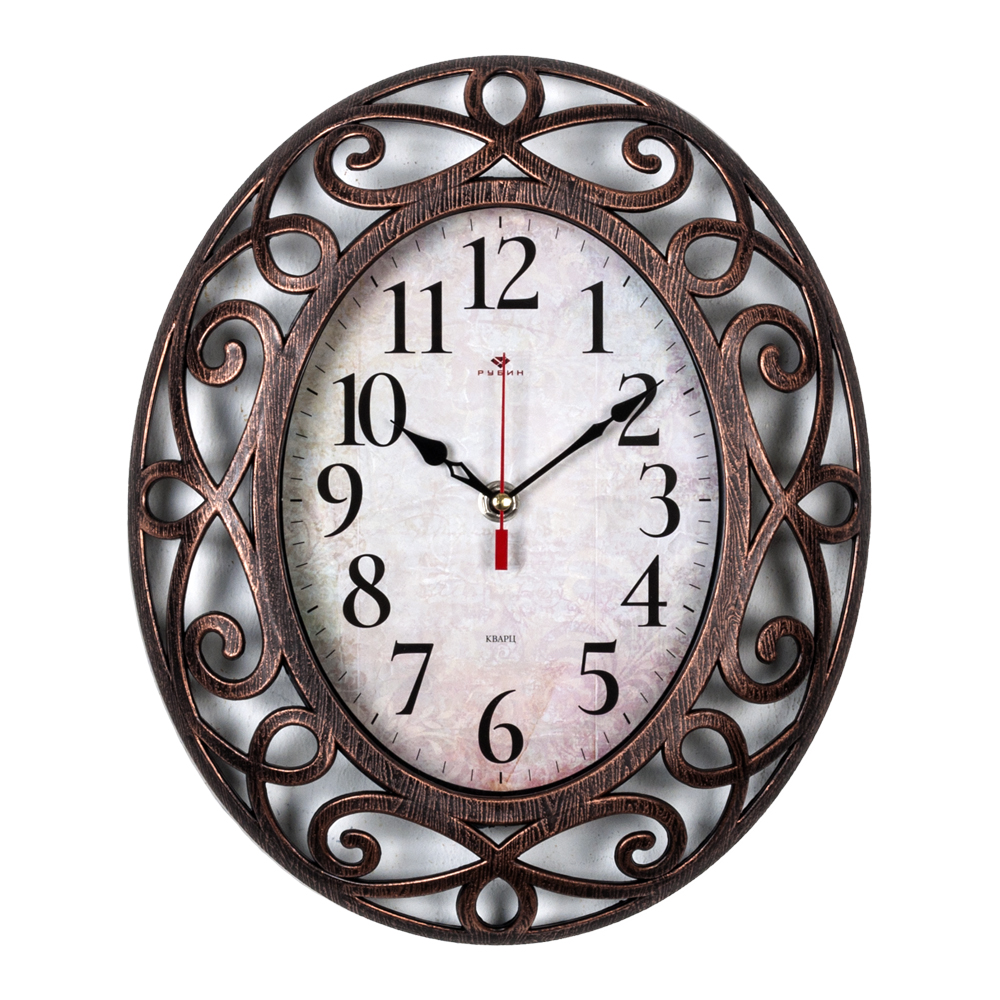 Часы настенные овал пластик 31*26 Классика корпус чёрный с бронзой Рубин (1/10)