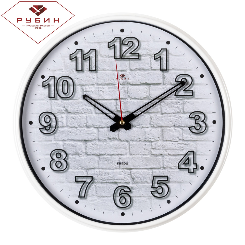 Часы настенные Рубин круг пластик 29*29 "Кирпичи" корпус белый (1/10)