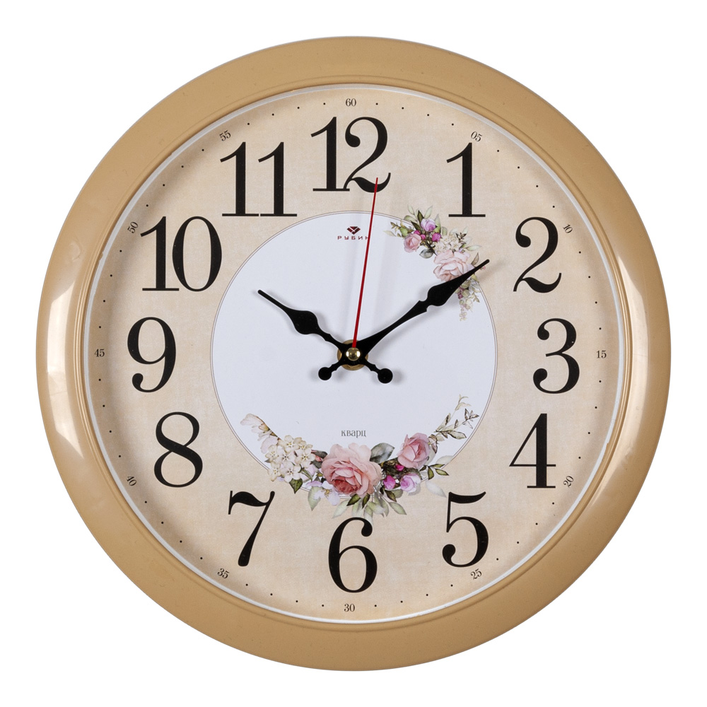 Часы настенные Рубин круг пластик 29*29 "Весенние" корпус бежевый (1/10)
