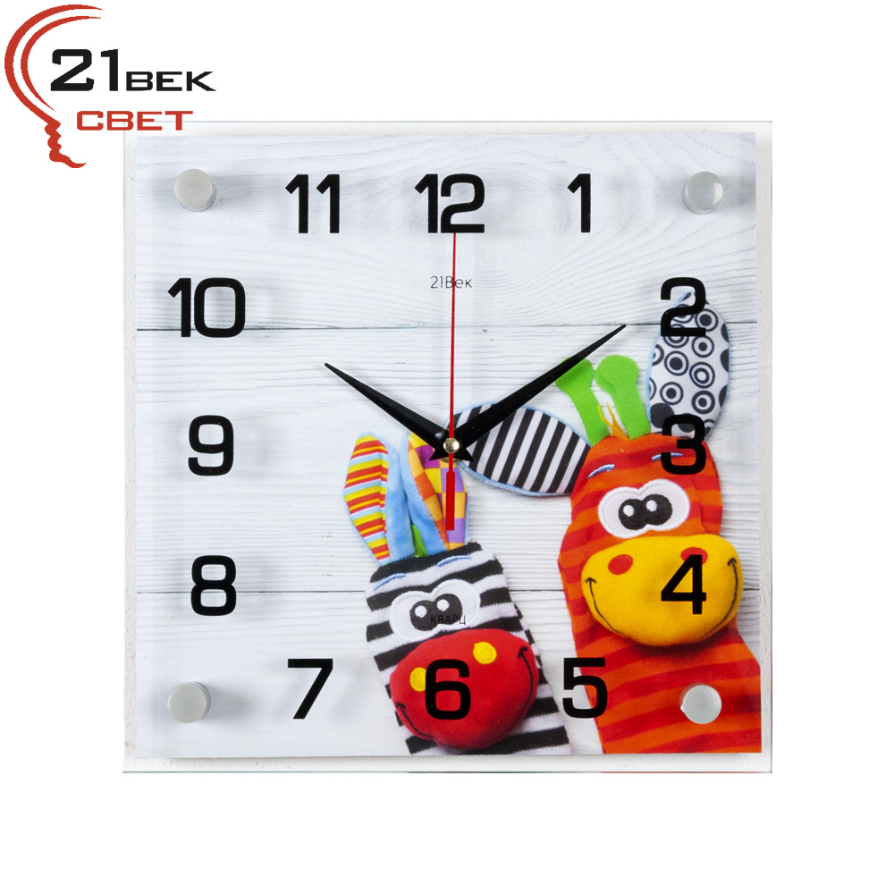 Часы настенные 21 Beк квадрат стекло 25*25 "Забавные зверюшки" (1/10)