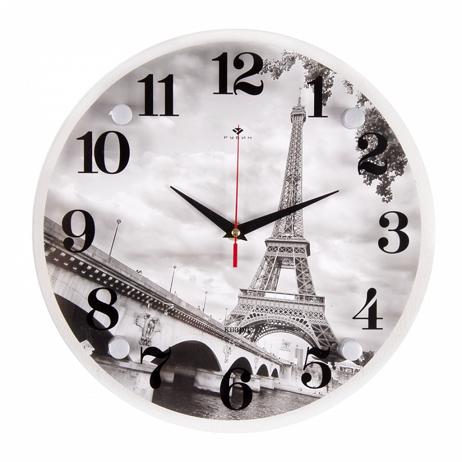 Часы настенные круг стекло d30 Эйфелева башня Рубин (1/10)