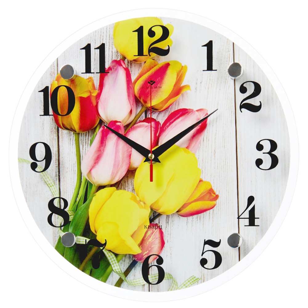 Часы настенные круг стекло d30 Тюльпаны Рубин (1/10)