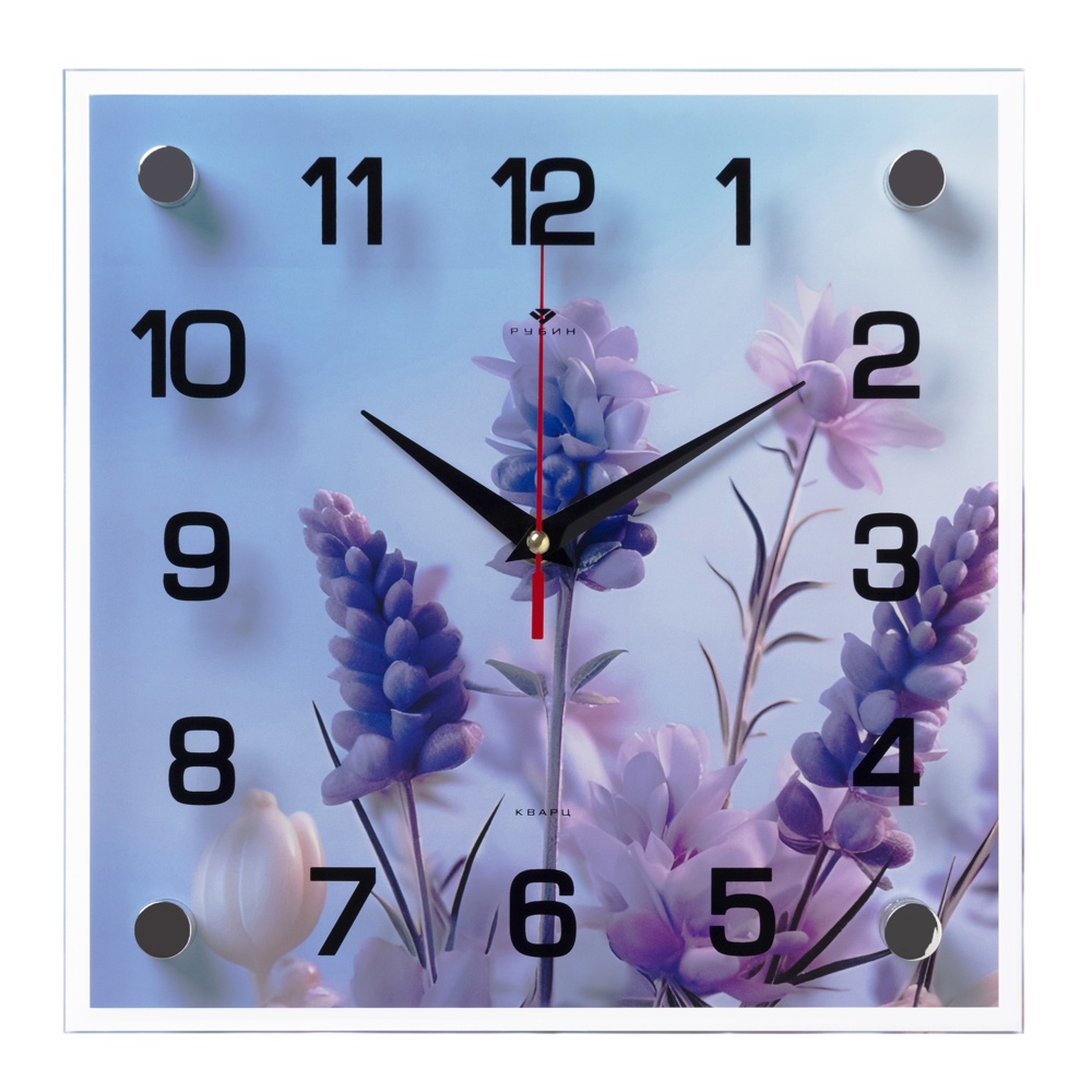 Часы настенные квадрат стекло 25*25 Полевые цветы Рубин (1/10)
