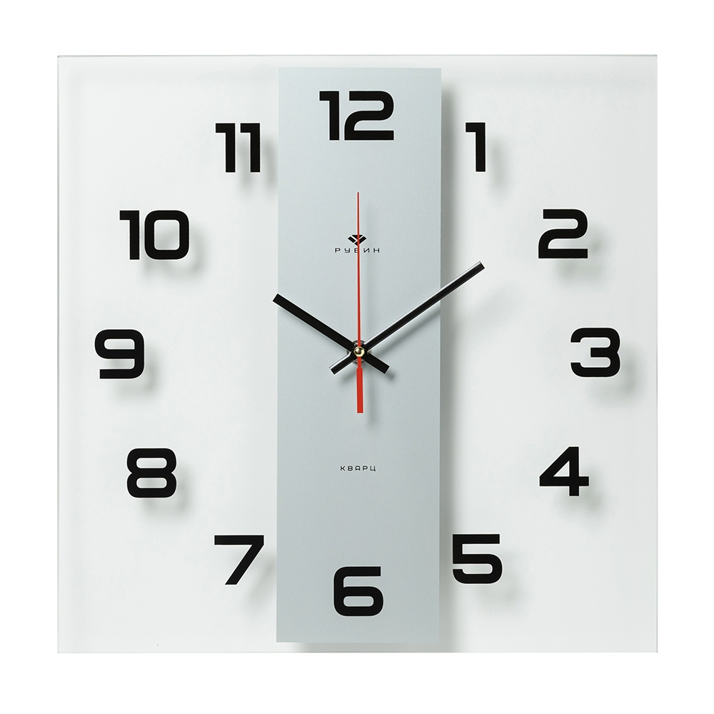Часы настенные квадрат стекло 35*35 Полоса открытая стрелка (10)*