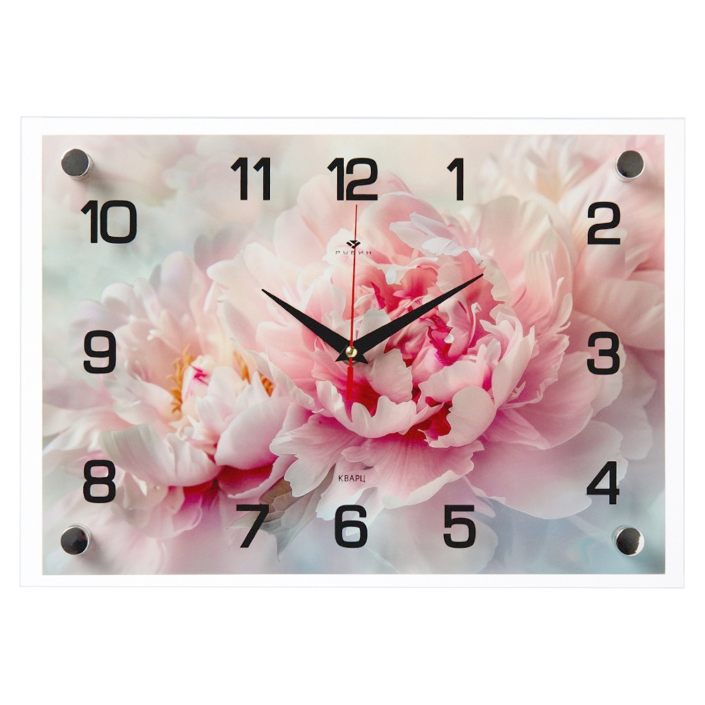 Часы настенные стекло 25*35 Розовые пионы Рубин (1/10)