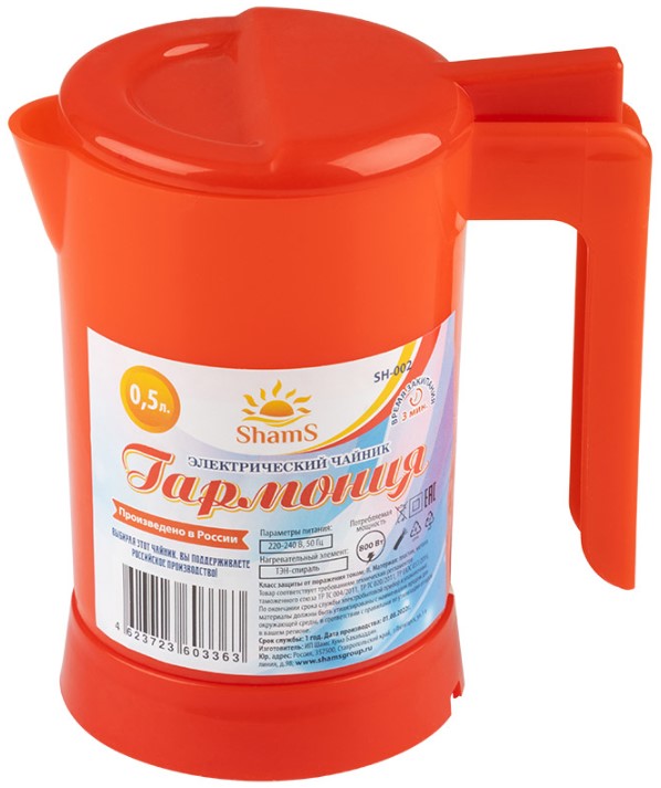 Чайник электрический пластик Гармония SH-002 0,5л 800Вт спираль красный (36)