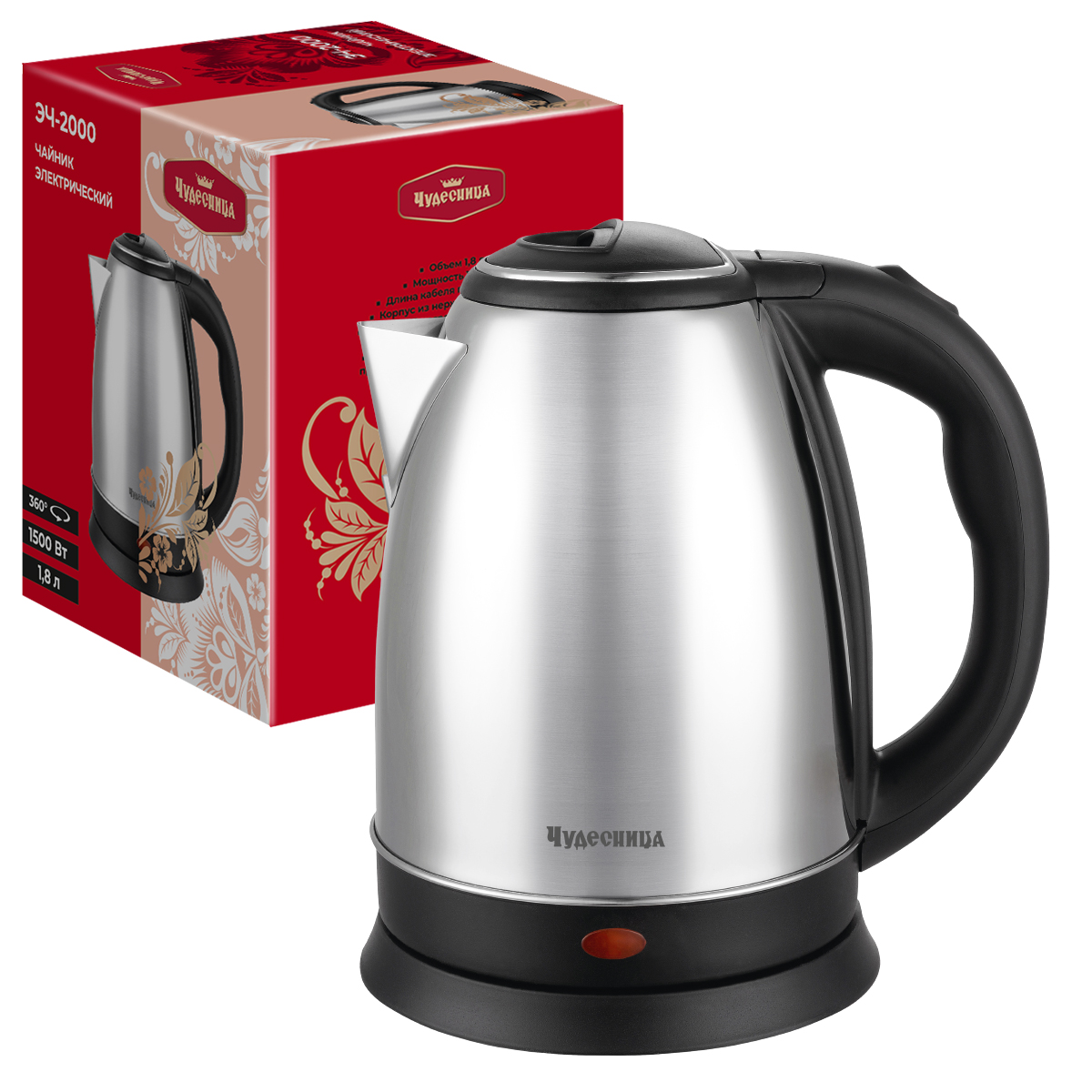Интернет-магазин «Витрина 59» предлагает купить товар «Чайник электрический сталь Чудесница ЭЧ-2000, 1.8л, 1500Вт, серебристый (1/12)» по цене: 7 677.00 руб. Артикул товара - ЭЧ-2000. Вы можете оформить заказ через интернет-магазин или по телефону +7 (950) 45-67-67-6. Дополнительную информацию о продаже товаров из каталога «Бытовая техника, аксессуары для сотовых» вы можете получить у нашего менеджера. Звоните!