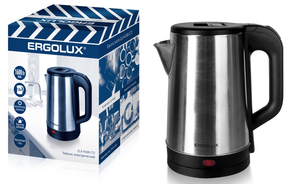 Чайник электрический сталь Ergolux ELX-KS08-C72 1.8л 1600Вт черный (12)