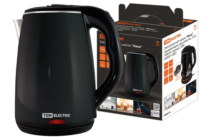 Чайник электрический сталь-пластик TDM Ника 1.8л 1800Вт черный (12)