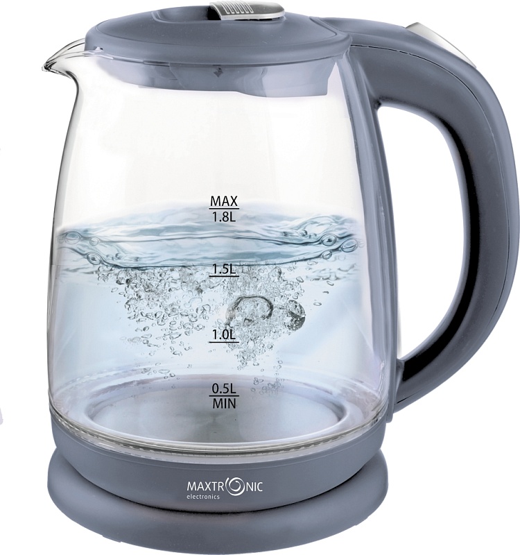 Чайник электрический стекло Maxtronic MAX-410 1.8л 1800Вт подсветка серый (1/12)