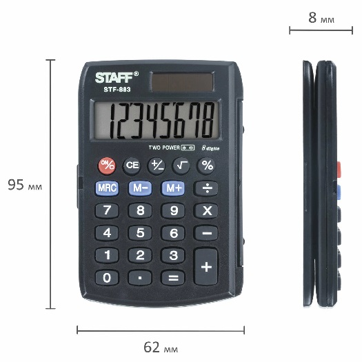 Калькулятор карманный Staff STF-883 8разр 2-е пит 95x62мм (2/50)