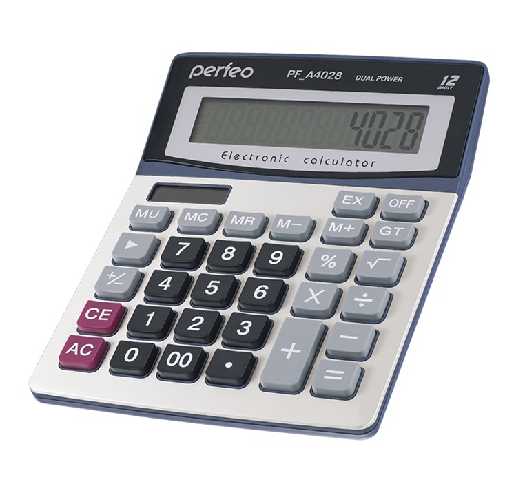 Калькулятор настольный Perfeo A4028 12разр 2-е пит серебр