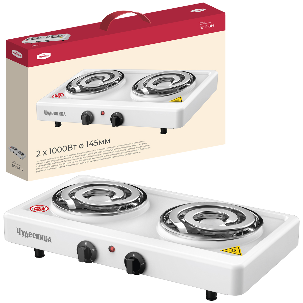 Электроплитка 2 конфорки Чудесница ЭЛП-814 1000+1000Вт толстая спираль d145+145мм белый (1/6)
