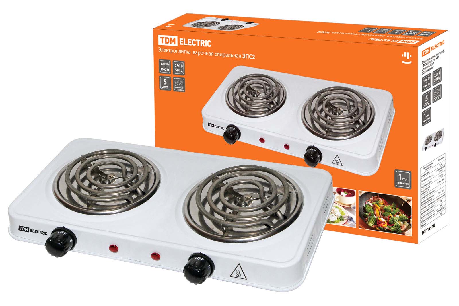 Электроплитка 2конфорки TDM ЭПС2 2000Вт спираль d150мм белая (6)