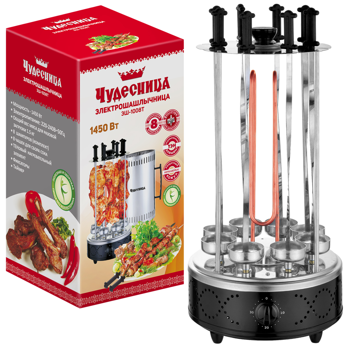 Шашлычница Чудесница ЭШ-1008Т, 1450Вт, 8 шампуров, таймер, нержавеющая сталь, серебристый (6)