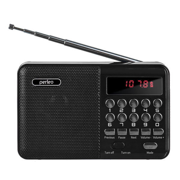 Радио Perfeo i90 Palm, аккумулятор тип 18650, FM/MP3/USB/microSD, гнездо для наушников 3,5 мм, черный (1/10)