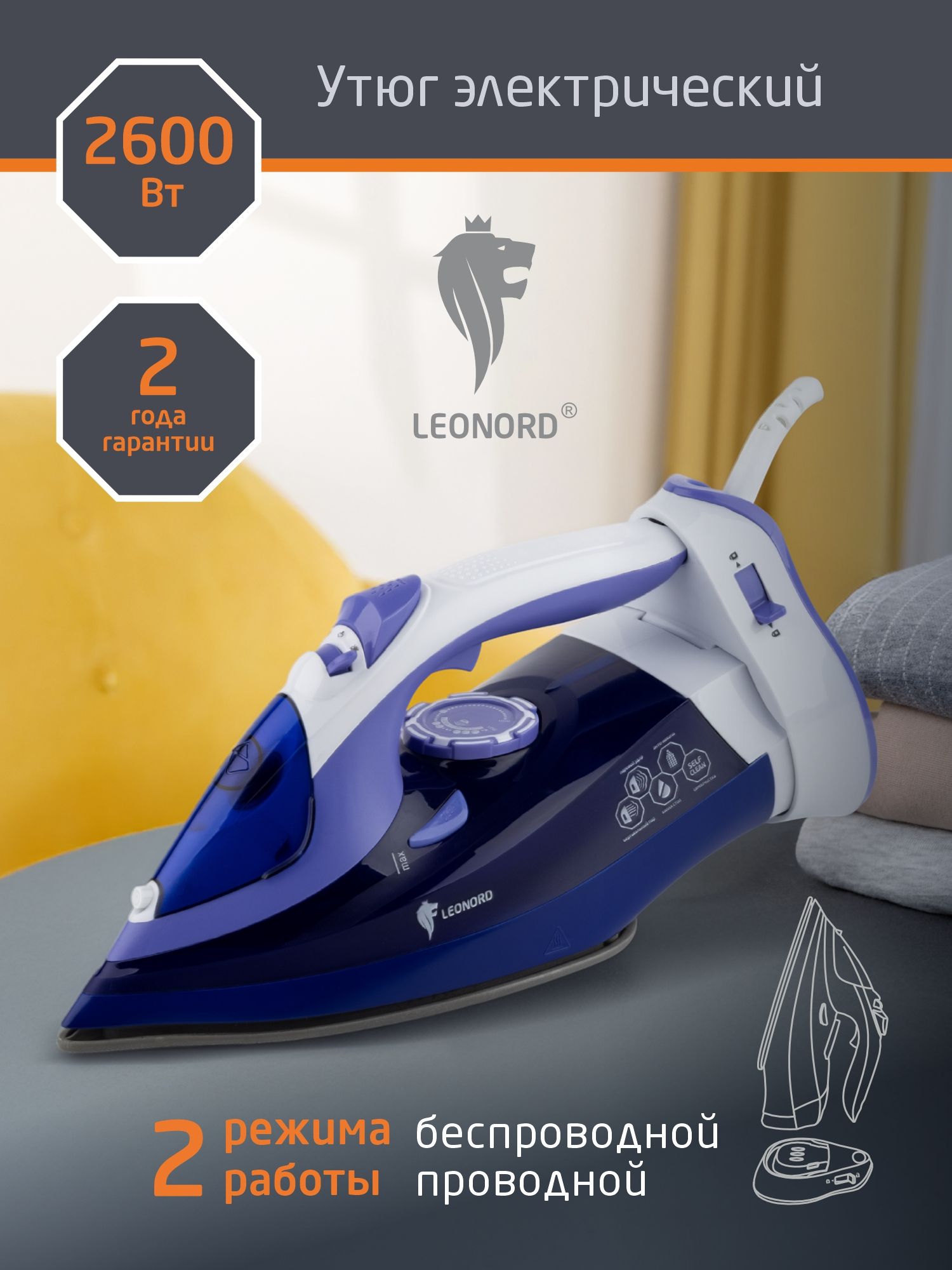 Утюг беспроводной Leonord LE-1807U 2600Вт керамика автоотключение фиолетовый (1/8)