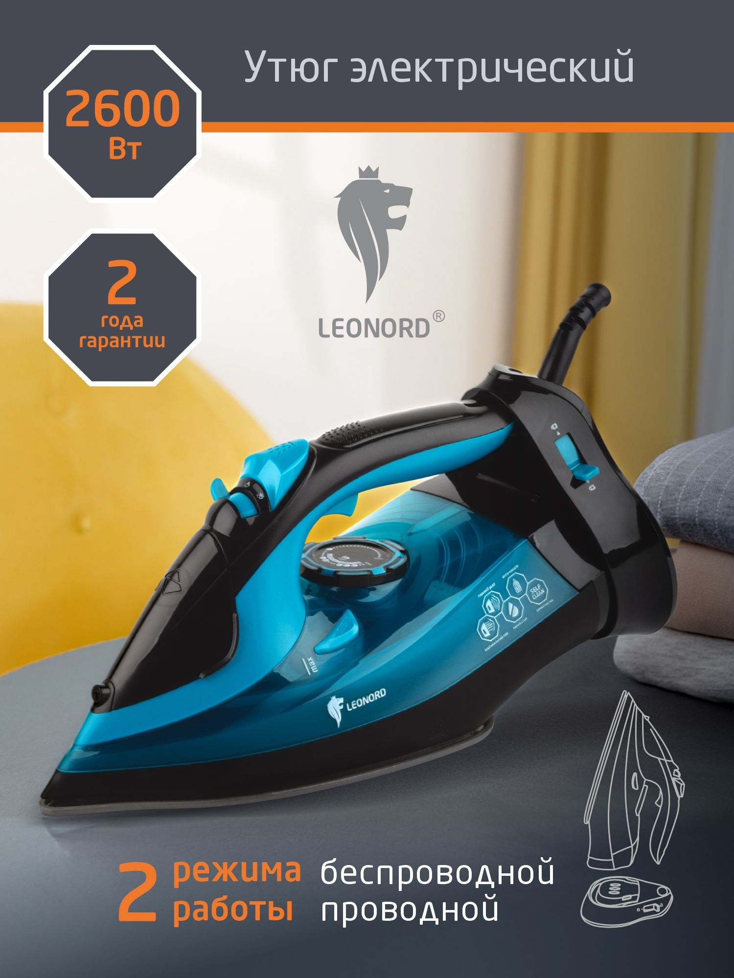 Утюг беспроводной Leonord LE-1807U 2600Вт керамика автоотключение зелёный (1/8)