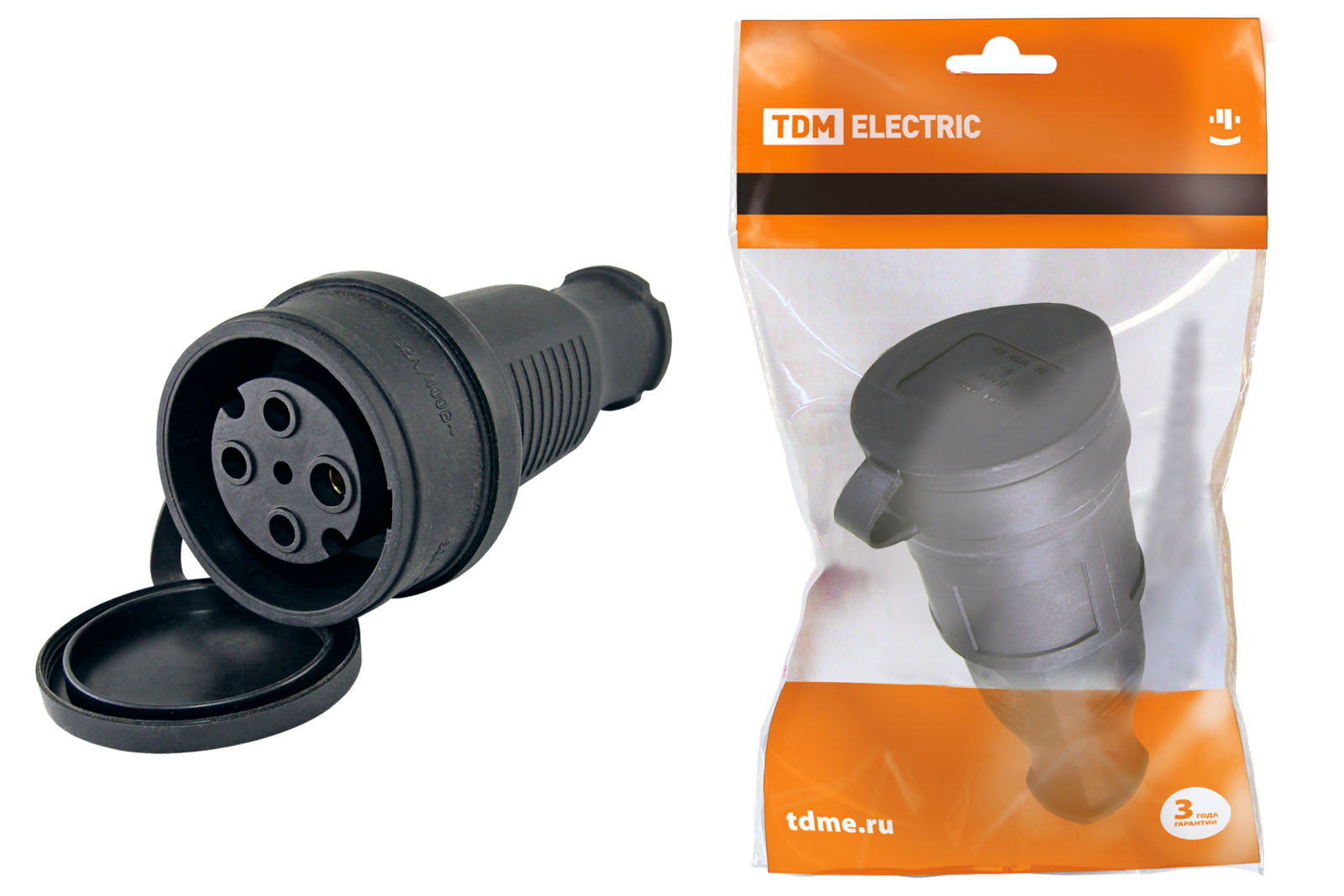 Штепсельное гнездо каучук TDM 3Р+РЕ IP44 32А (10)