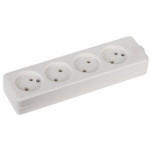 Колодка ЭРА K-4 . На 4 розетки без зазeмления. Максимальная мощность 10 А/2200. Для кабеля сечением до 2x1мм2.