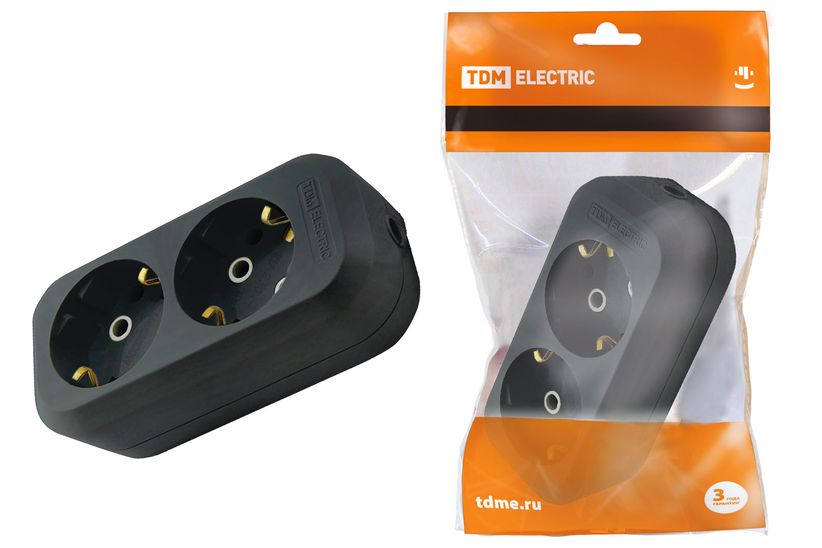 Колодка TDM 2гн 16А с заземлением чёрный (20)