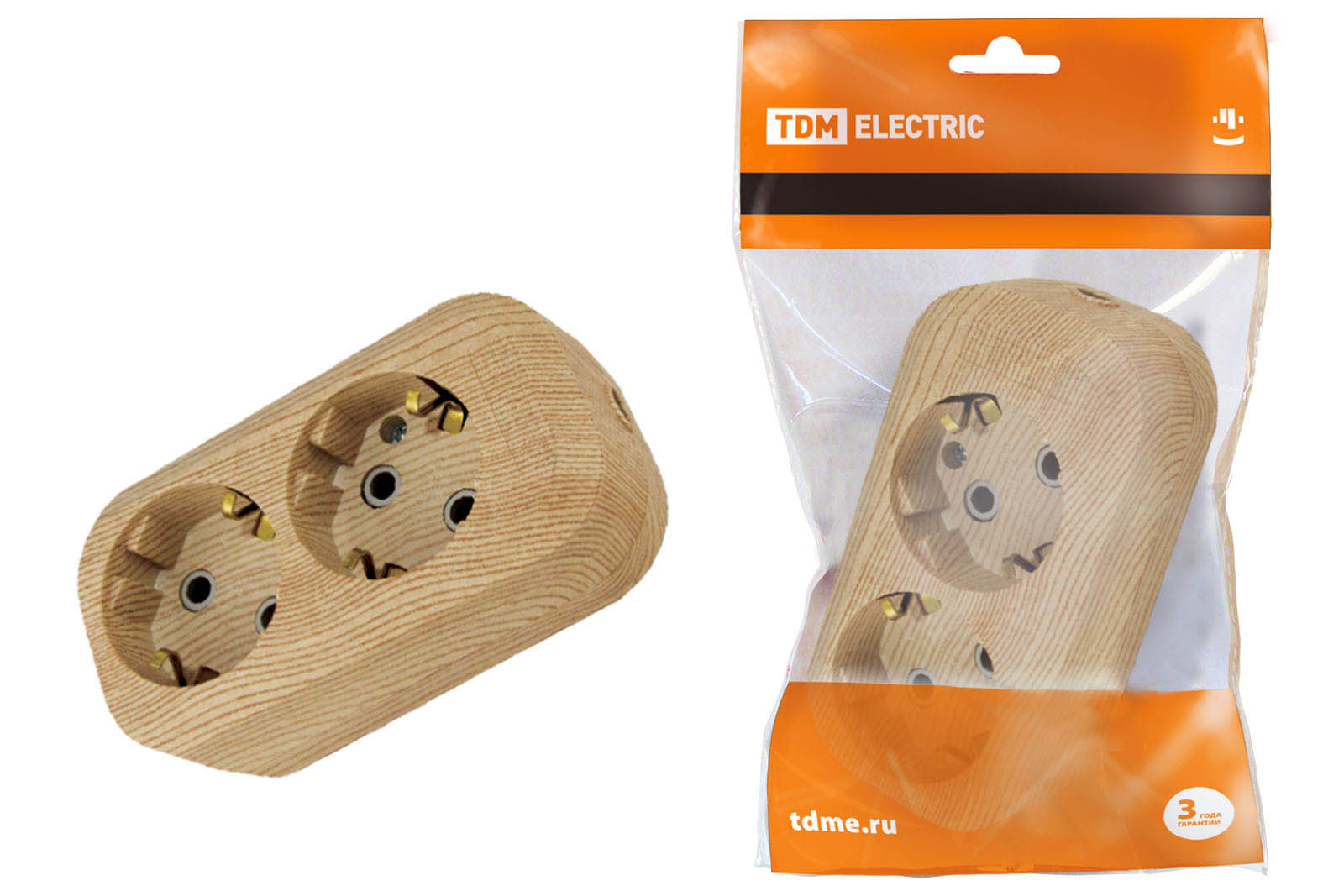 Колодка TDM 2гн 16А с заземлением сосна (20)