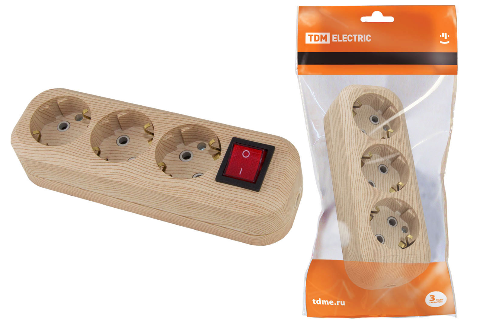 Колодка TDM 3гн 16А с заземлением выключатель сосна (15)