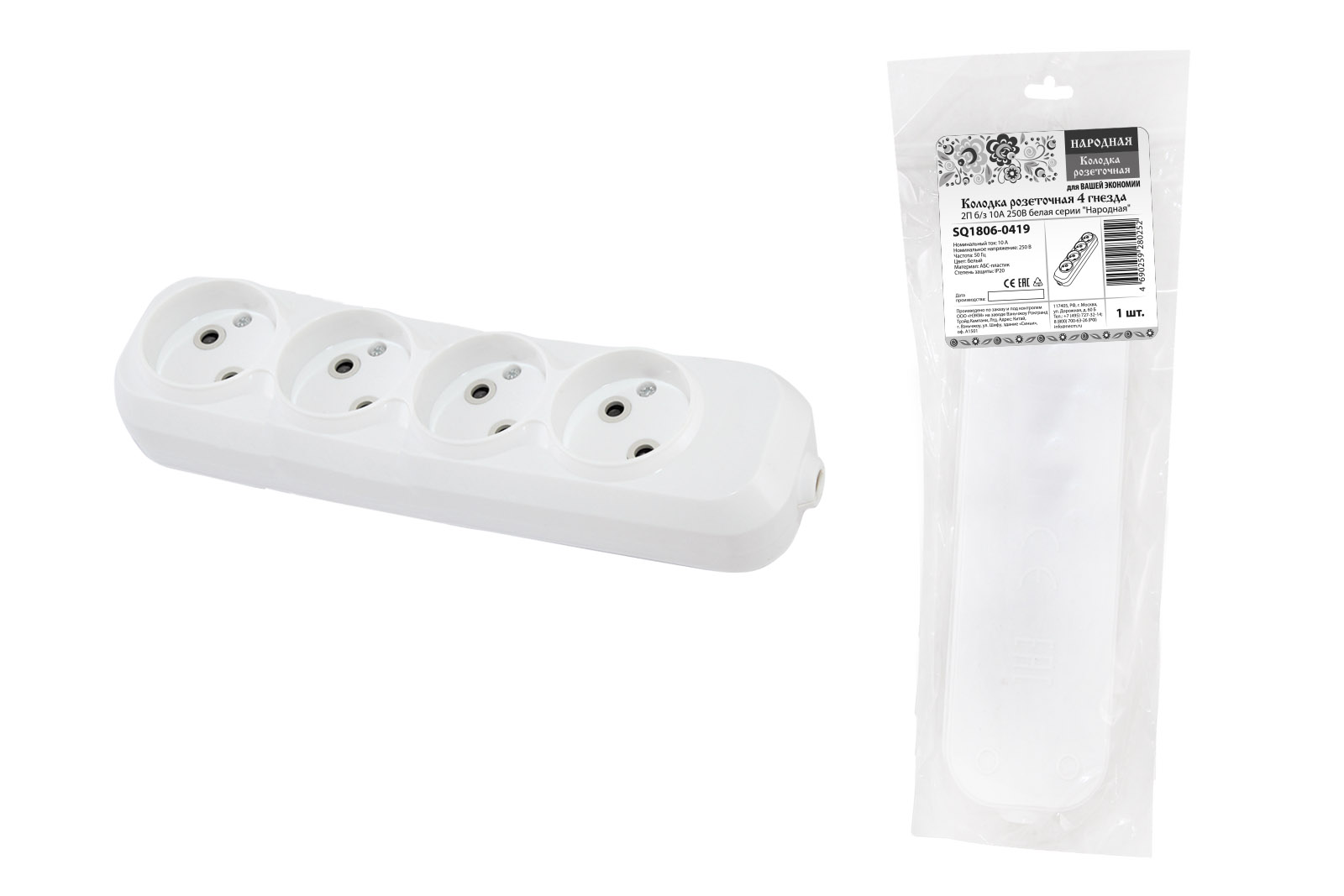 Колодка TDM 4гн 10А без заземления белый Народная (10)
