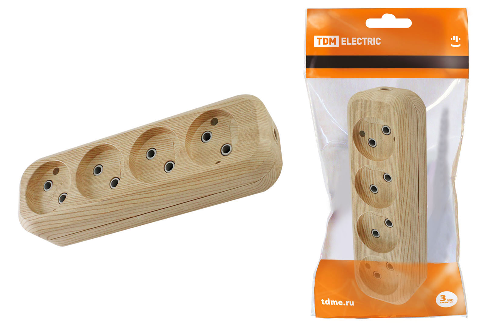 Колодка TDM 4гн 10А без заземления сосна (20)