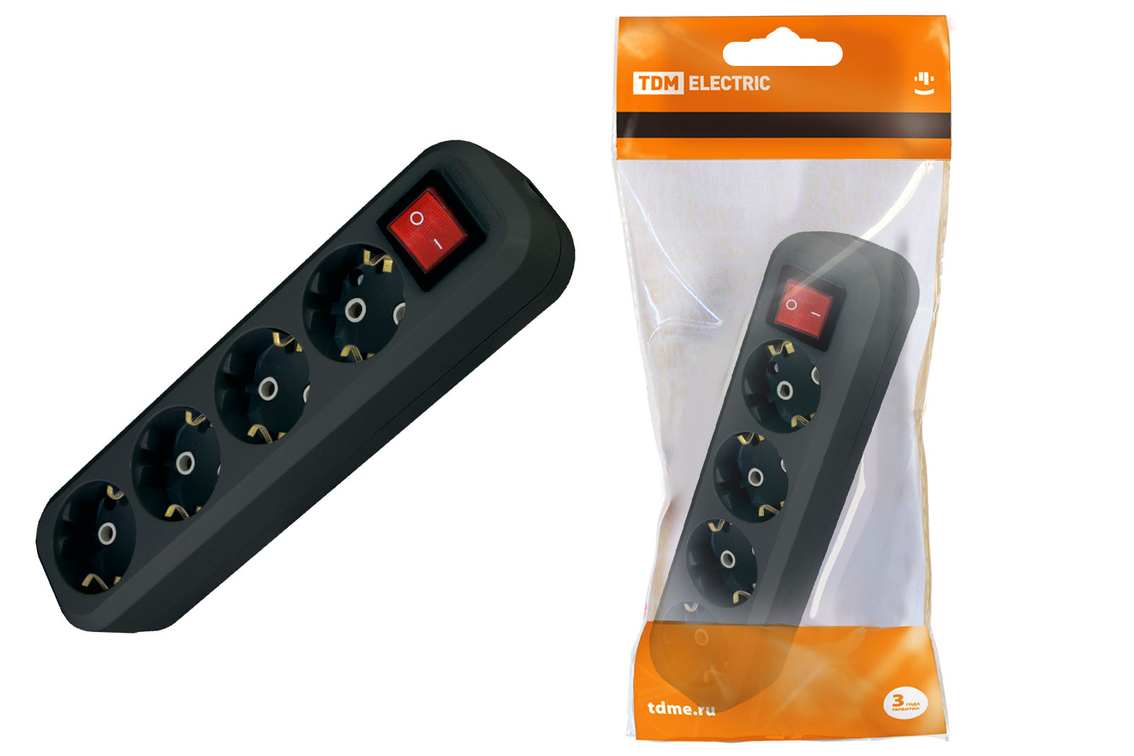 Колодка TDM 4гн 16А с заземлением выключатель чёрный (12)