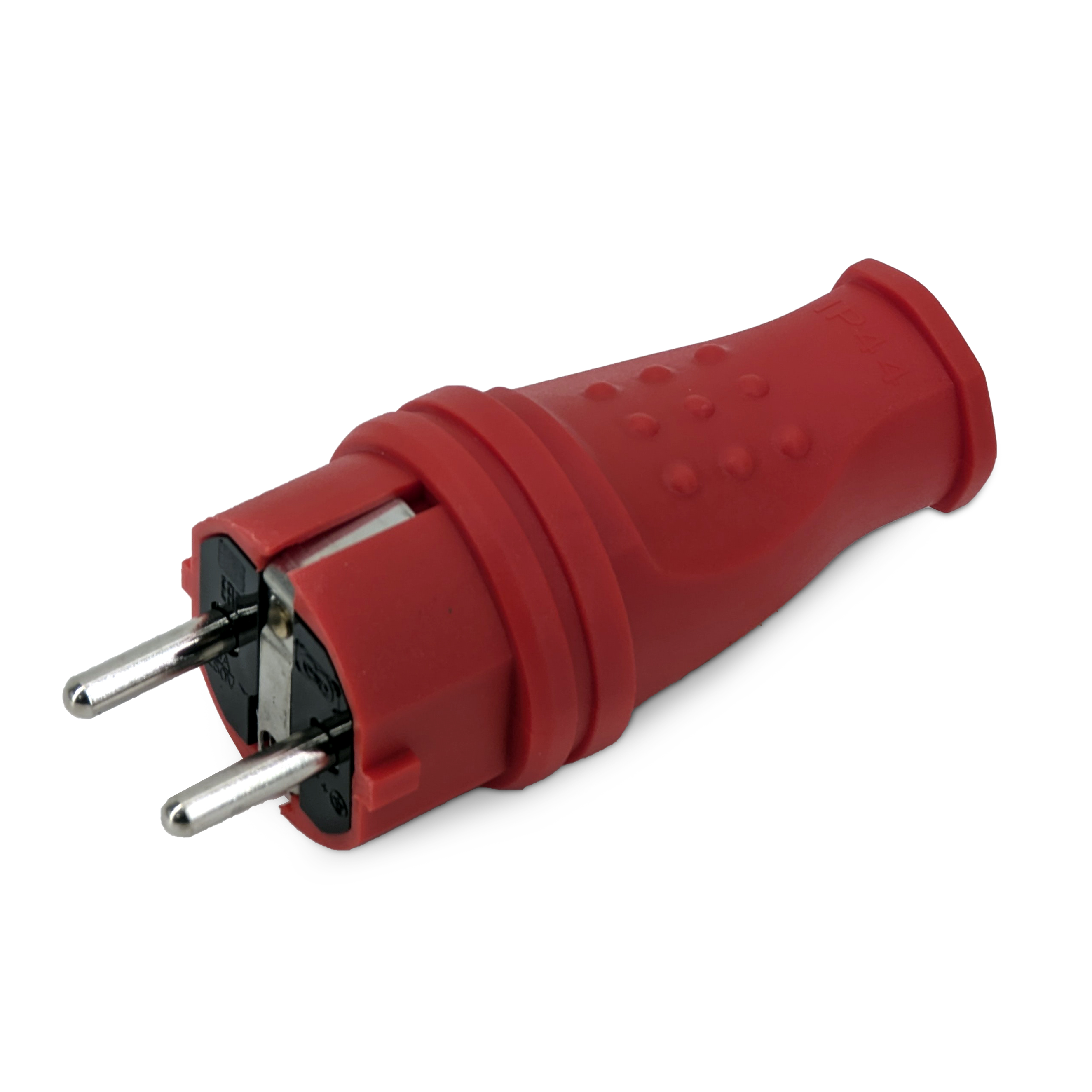 Вилка каучуковая прямая с/з 16А IP44 красный Omnyx (24/240)