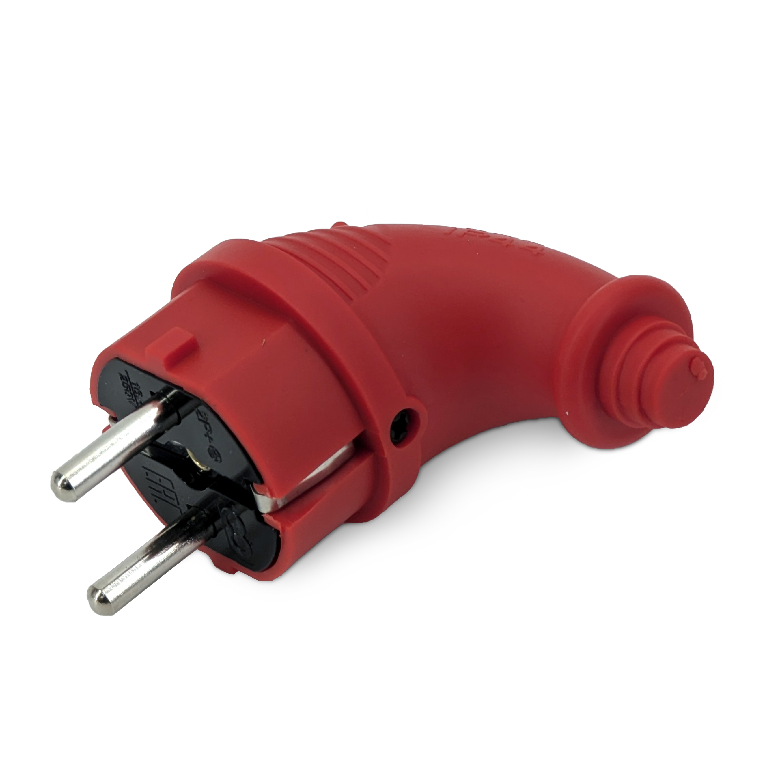 Вилка каучуковая угловая с/з 16А IP44 красный Omnyx (24/240)