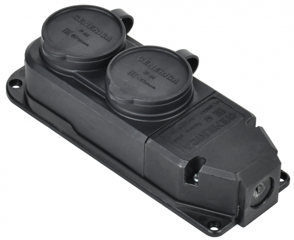Колодка каучуковая 2 гнезда с заземлением IP44 16А Generica (112)