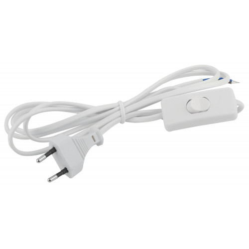 Шнур для бра UX-ШВВП-S-1,8m-W без заземления, провод ШВВП с сечением 2х0,5, длина 1,8 м, цвет - белый. Провод шнура питания состоит из скрученных жил с надежной ПВХ оболочкой. На конце шнура имеется штепсельная вилка. Изделие предназначено для комплектации или ремонта электрических бытовых приборов.
