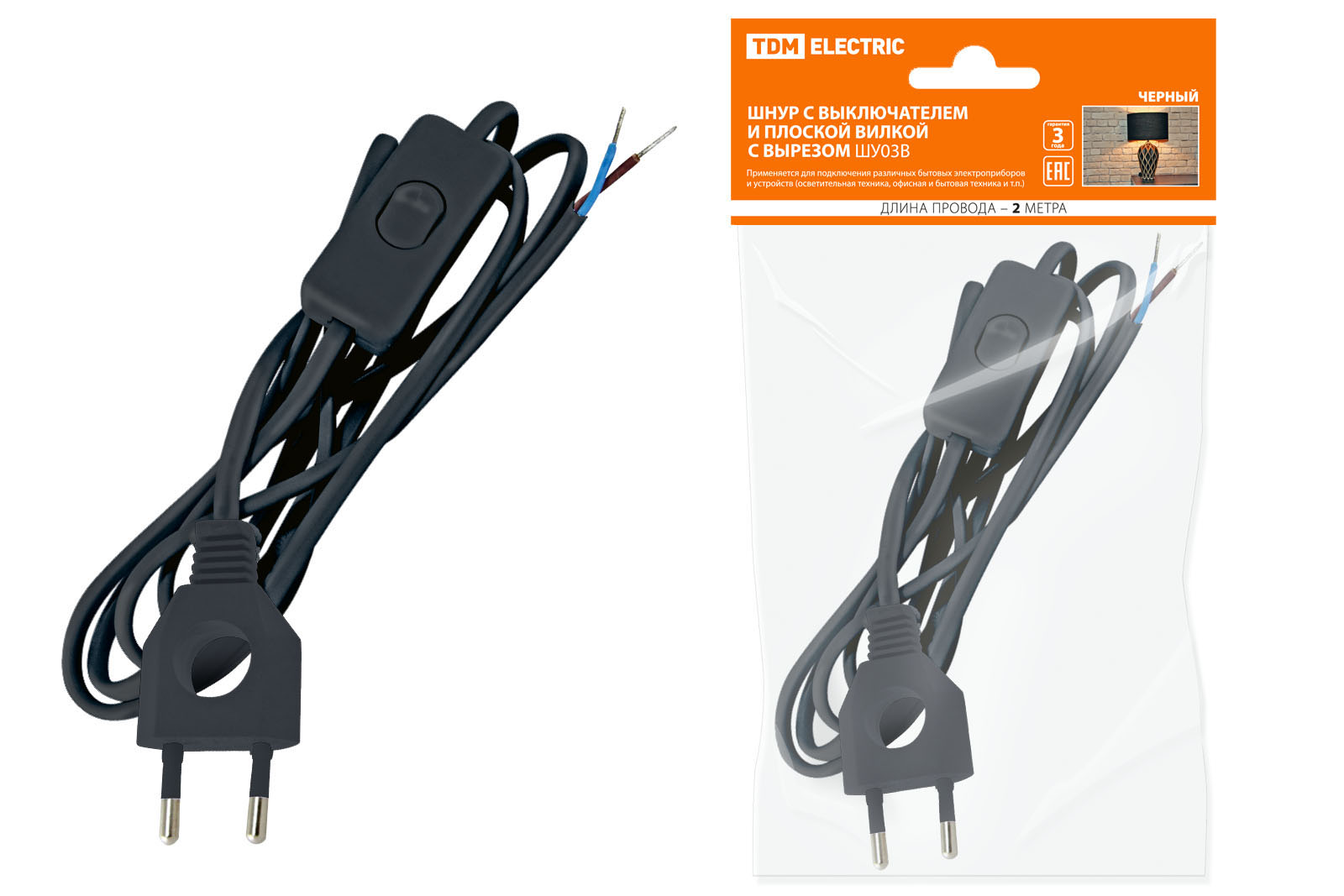 Шнур с переключ.-бра TDM 2м кольцо черный (80)
